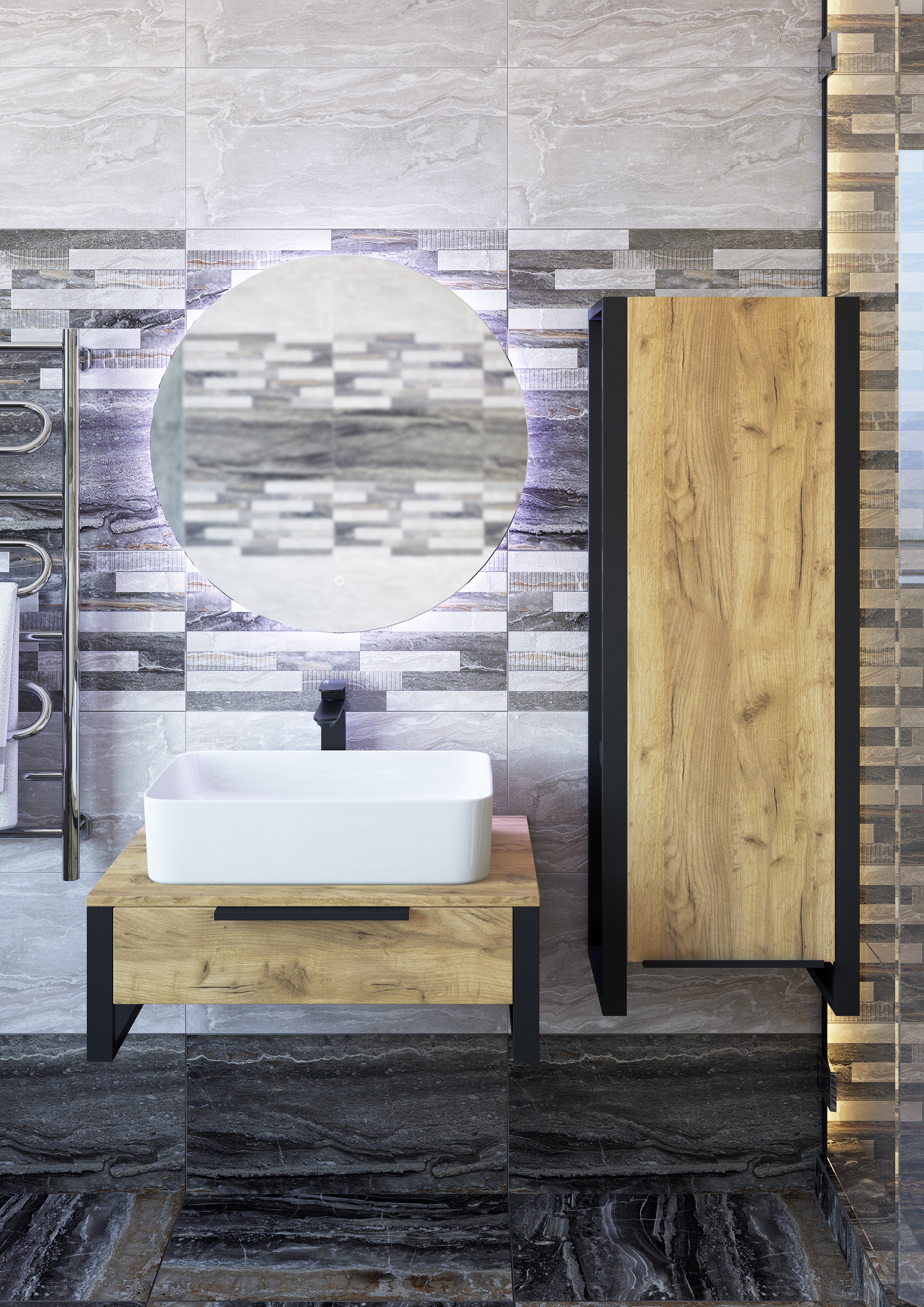 Шкаф-пенал Sanflor Гард подвесной, дуб крафт золотой/черный
