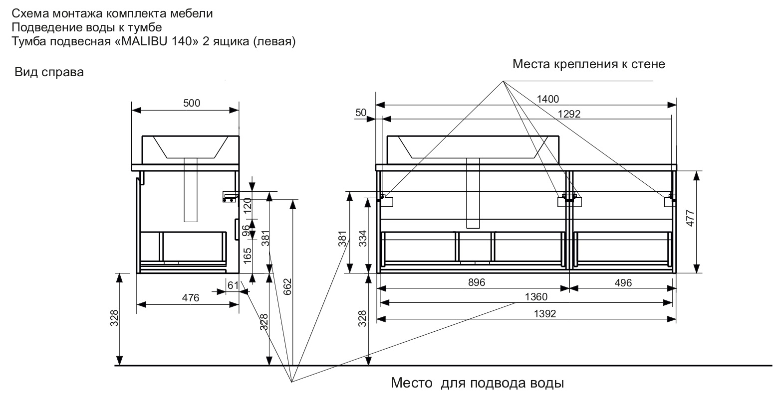 Расположение смесителя
