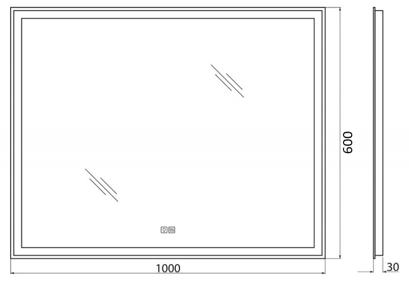 Декоративная светодиодная подсветка по всему периметру зеркала. Возможность регулировки яркости (диммер) подсветки.Подогрев полотна зеркала.Обратная сторона зеркала защищена пластиковой панелью от попадания воды и влаги. На зеркале установлен двойной сенсор, блок увеличенной мощности, с помощью которого производиться отдельное включение подсветки и подогрева зеркала. Однократное нажатие сенсора включает или выключает функцию, соответственно символу на зеркале, длительное удержание выключает подсветку клавиш сенсора.