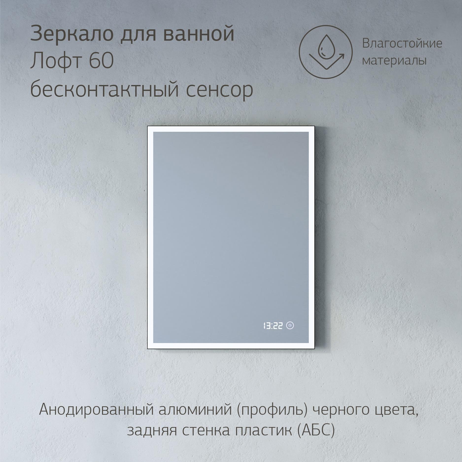 Зеркало Бриклаер Лофт 60 бесконтактный сенсор, с часами