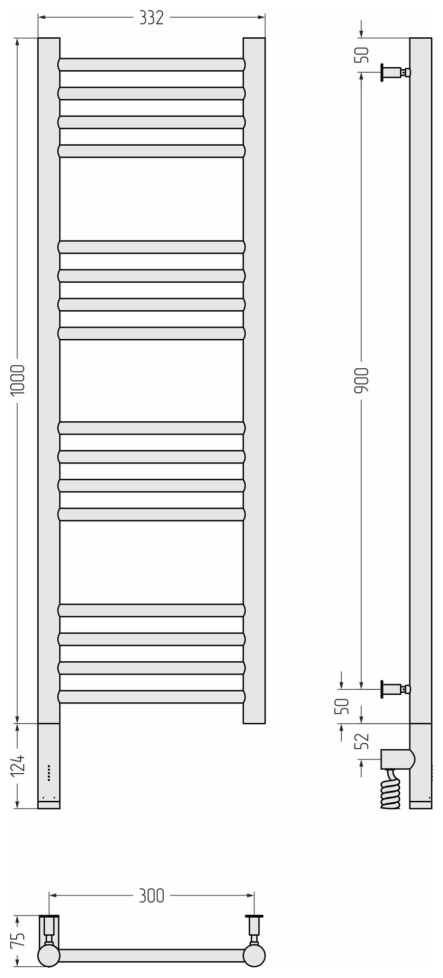 Полотенцесушитель электрический Сунержа Богема 3.0 прямая 100х30 L золото матовое