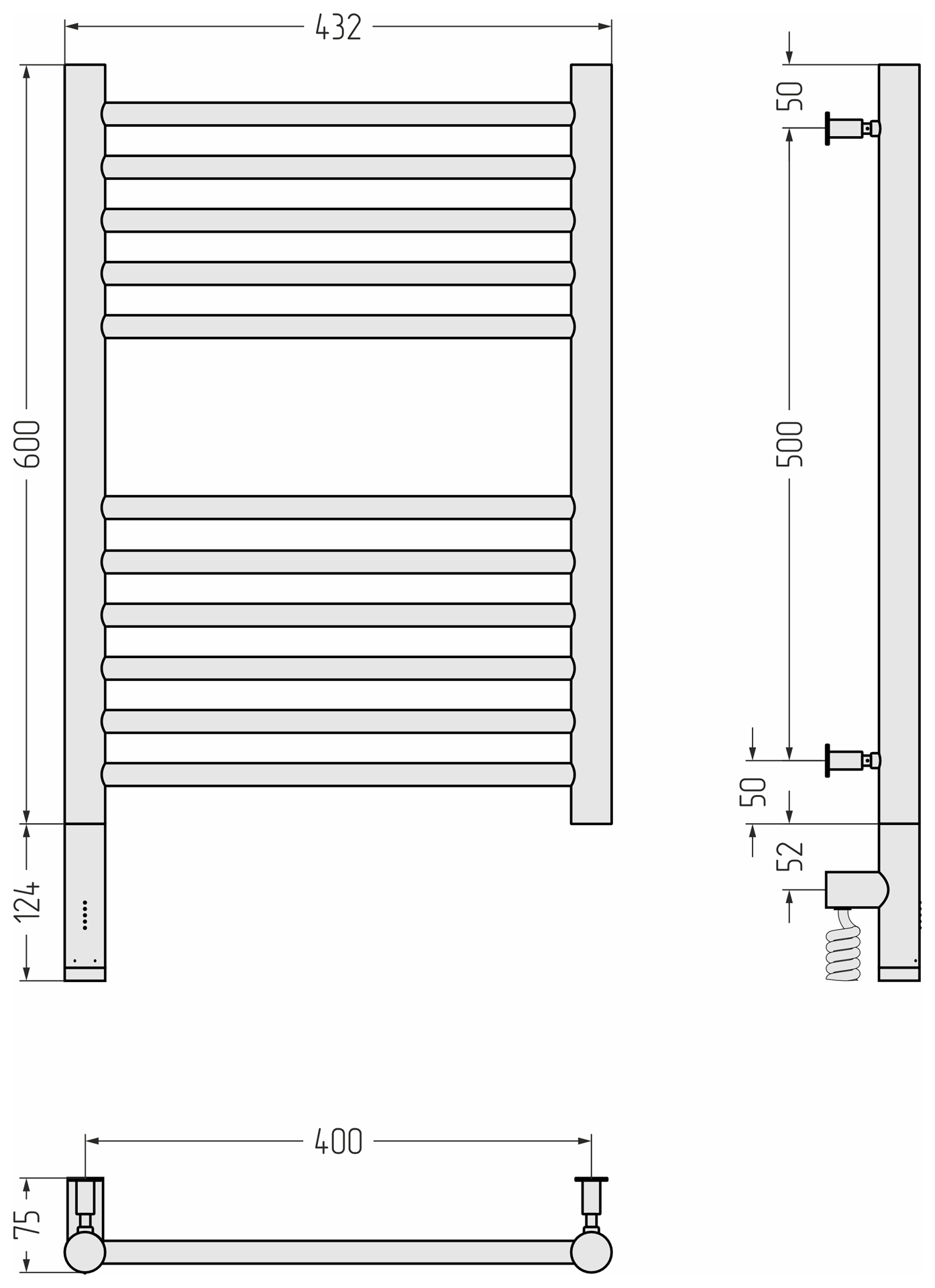 Полотенцесушитель электрический Сунержа Богема 3.0 прямая 60х40 L шампань