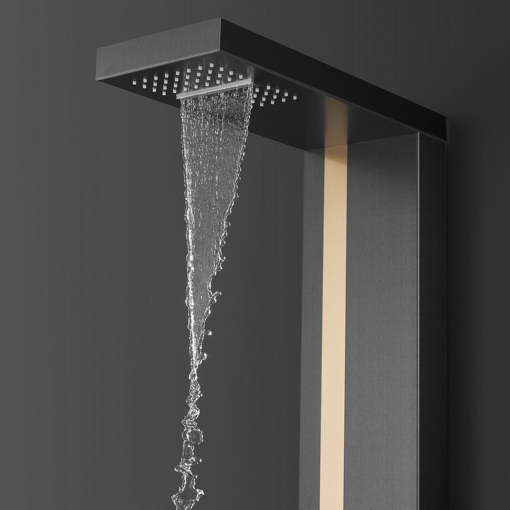 корпус из нержавеющий стали с покрытием PVD / смеситель, без регулировки напора воды / керамический картридж 35 мм / тропический душ с водопадом
