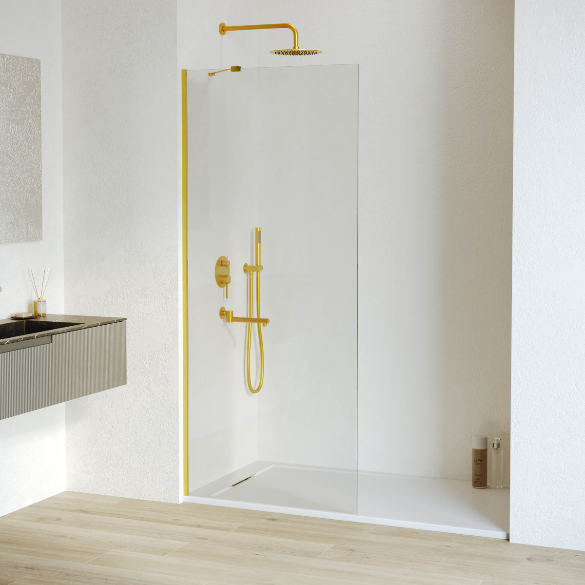 адаптивность к неровным стенам / универсальная установка / регулируемая ширина 89-90.5 см / цвет профиля золото BRUSH